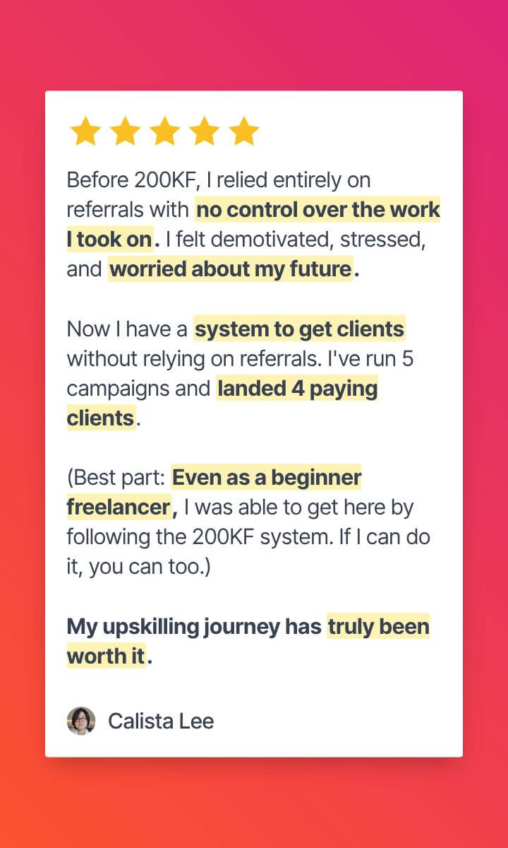 The $200KF process is a must-see if you're skilled at your craft, but struggle to find clients.