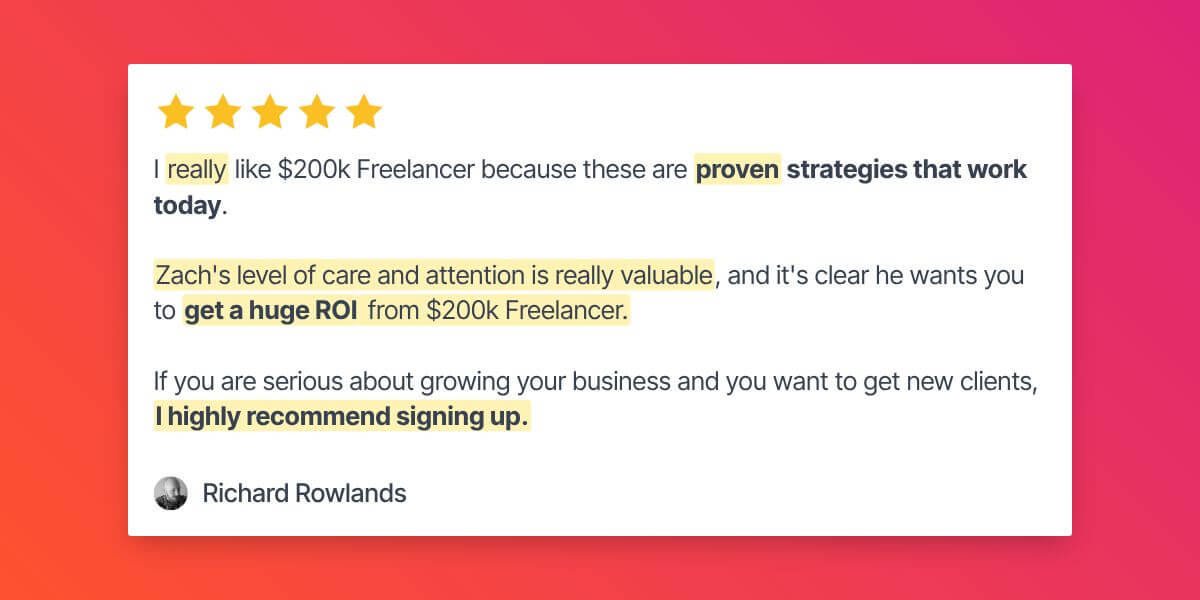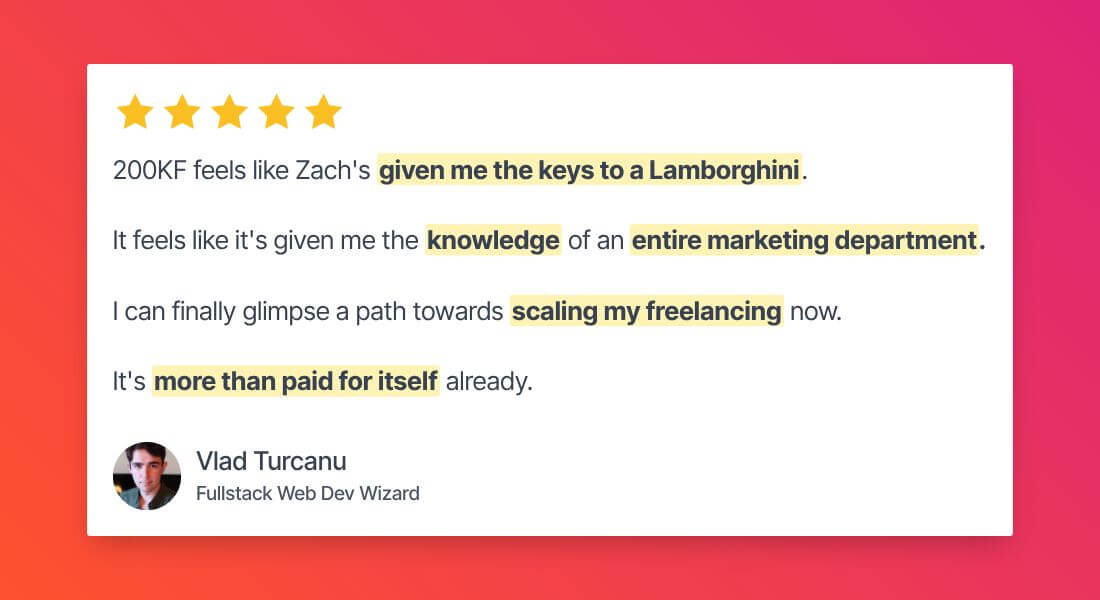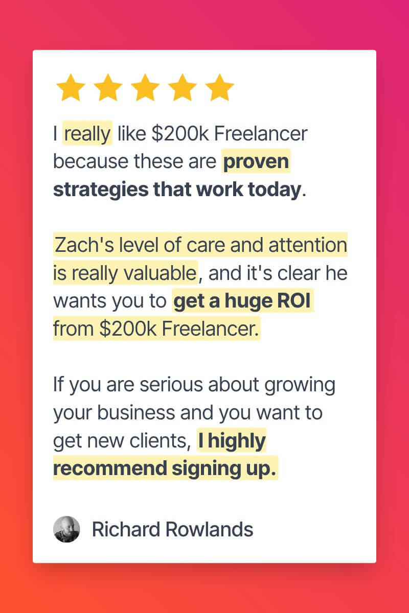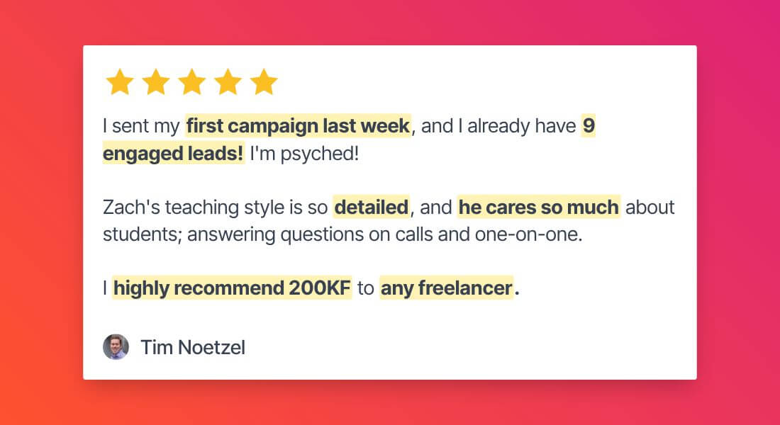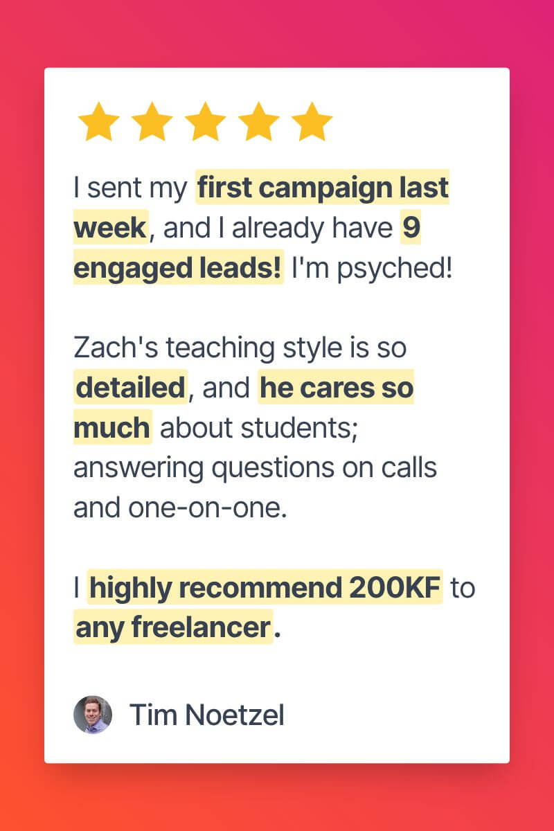 Absolutely. $200k Freelancer is designed for freelancers who are ready to take action, not just passively watch videos or get bogged down in theory. Every lesson is actionable, with clear steps for implementation, and a comprehensive linear pathway through the process, so thereβs no guesswork about what you should be doing next, and no getting bogged down by βdecision paralysis.β Just show up, do what Zach tells you to do, and ask for help if youβre stuck on something.