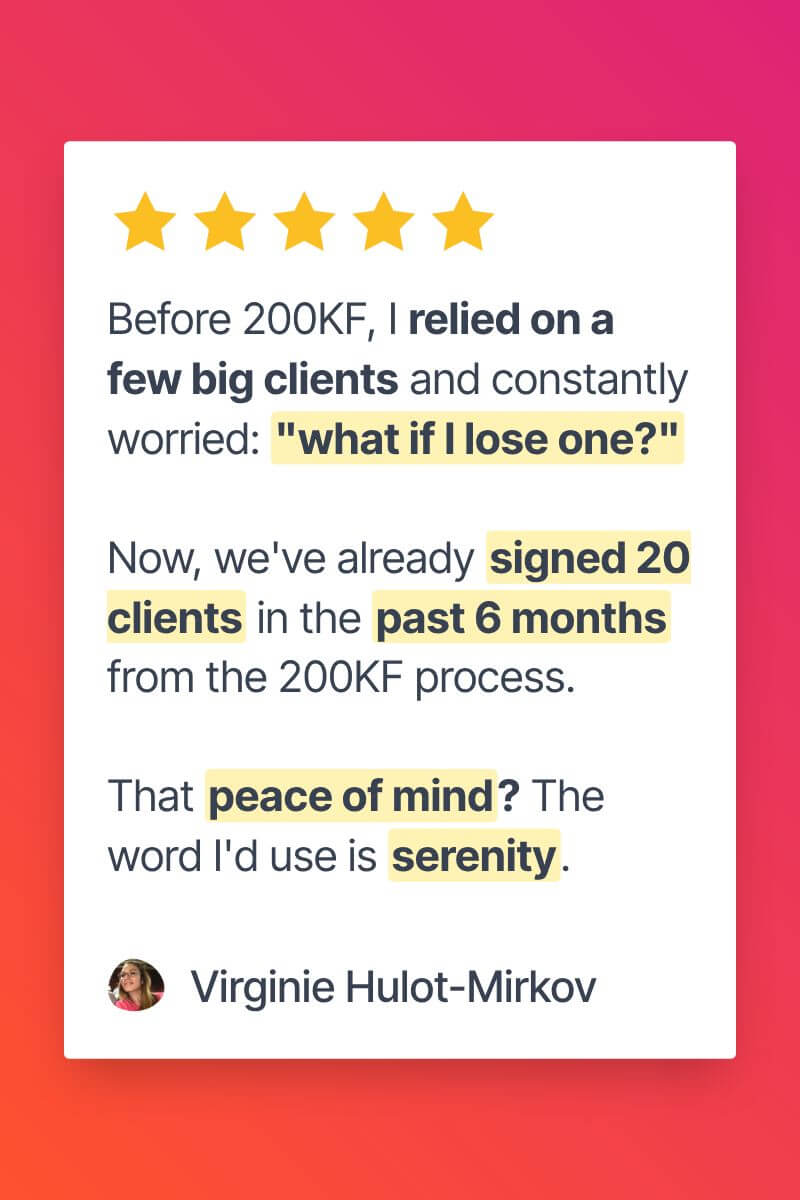 β With 200KF: You're scaling now that you have predictable lead gen. You turned down 2 "meh" projects this quarter because you had better options. You raised your rates. Clients said yes.