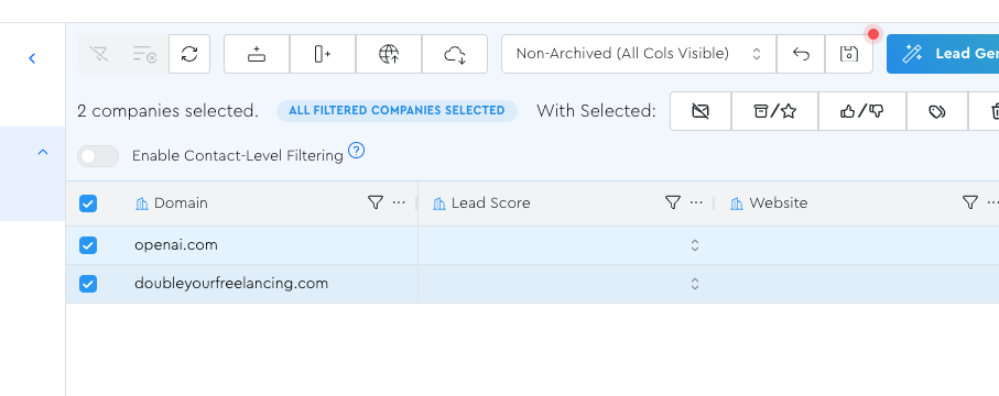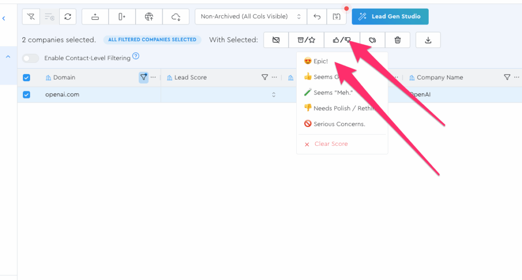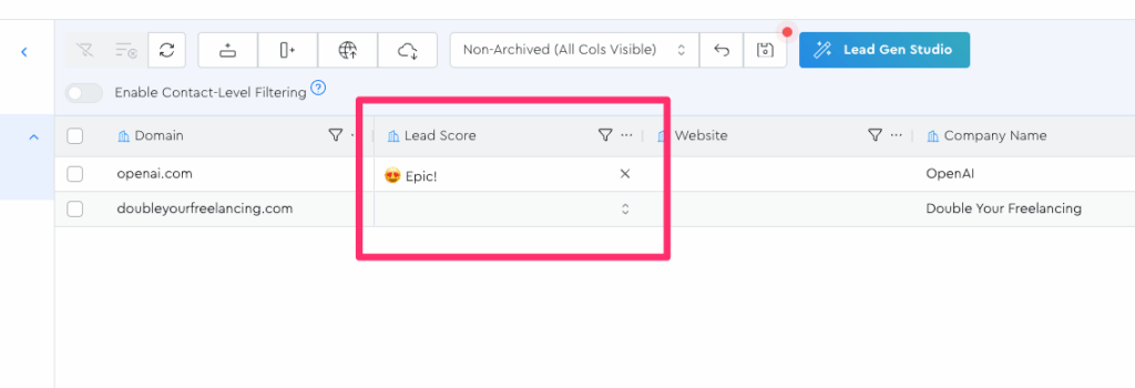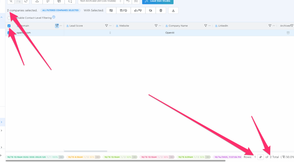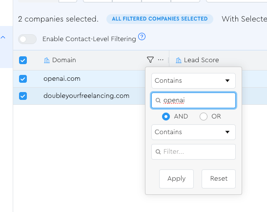 Et voilà; only openai got the lead score, because only openai matched the filters that were set when we applied the lead score:
