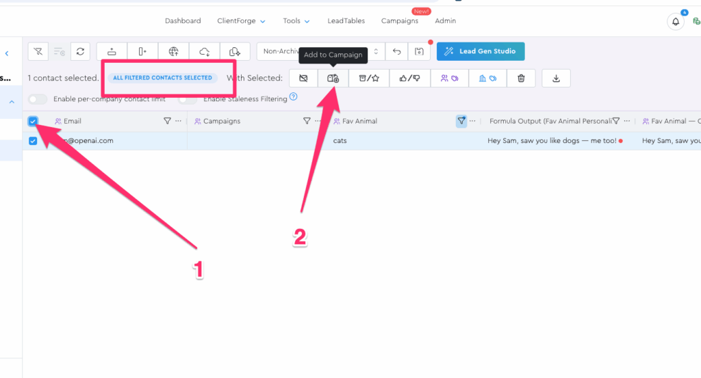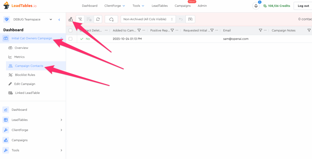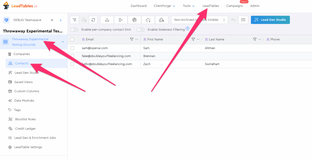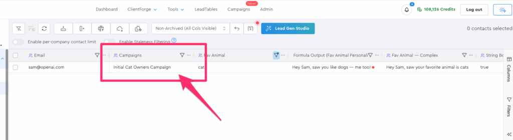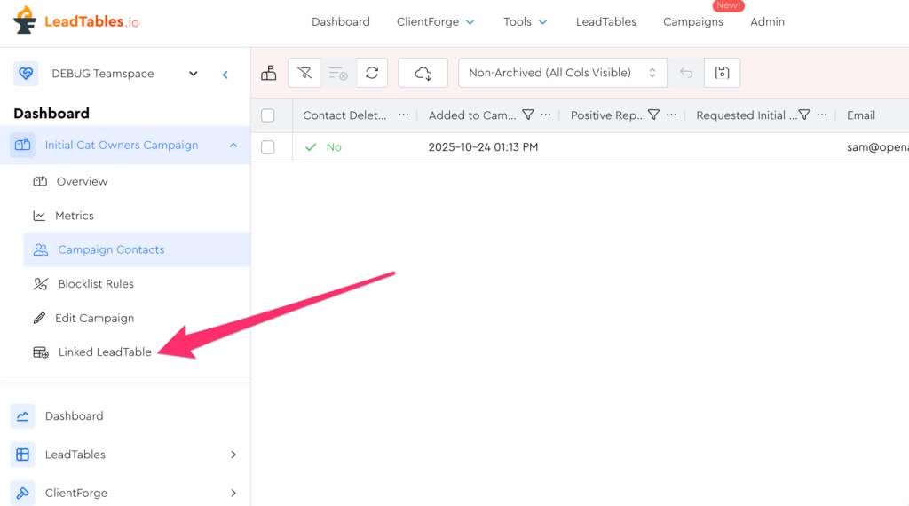 So let’s navigate back to the Campaign’s linked LeadTable from its sidebar: