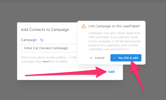 NB: Given that a Campaign can only belong to one LeadTable, that’s why the campaign nav doesn’t have a “LeadTables” dropdown.