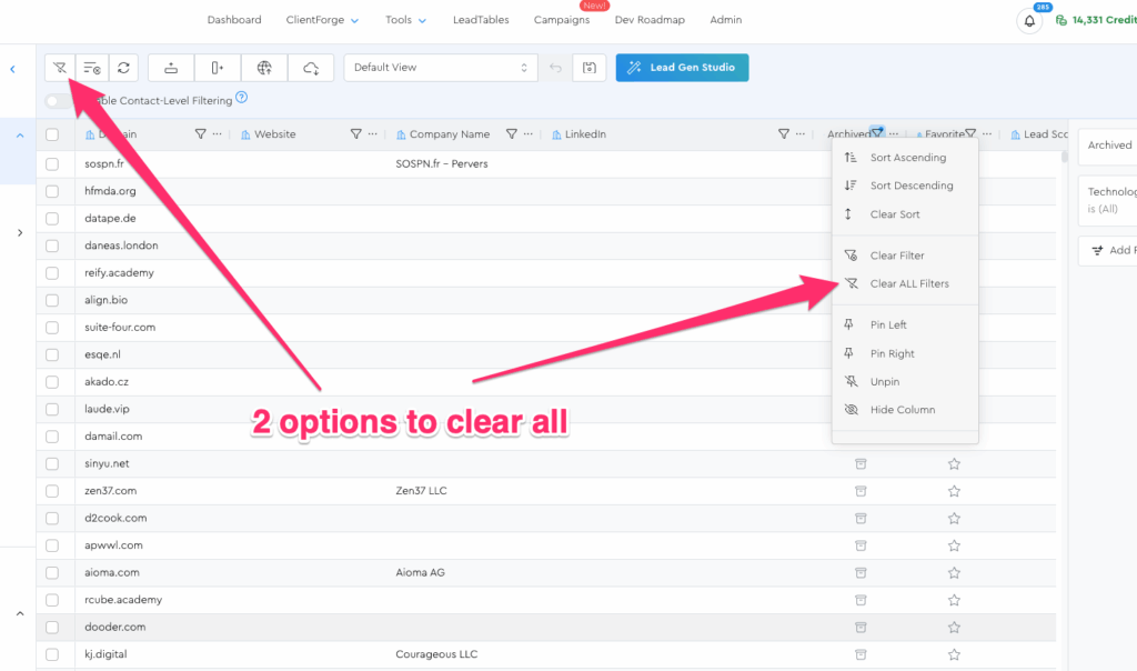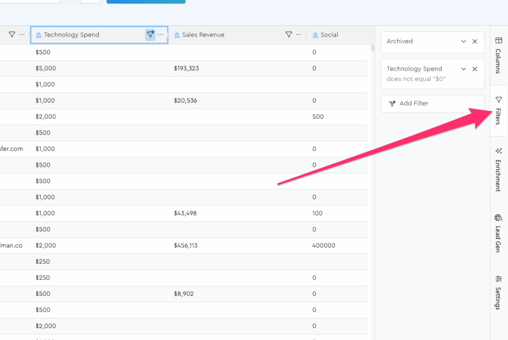 Applying filters in LeadTables is easy; there are two ways you can do it.