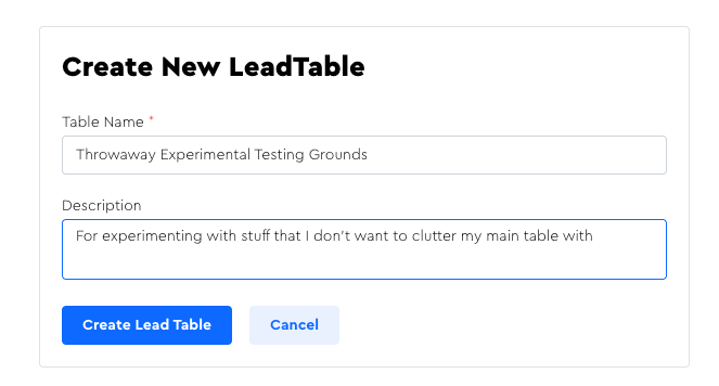 Create a new “Throwaway Experimental Testing Grounds” table if you don’t have one already