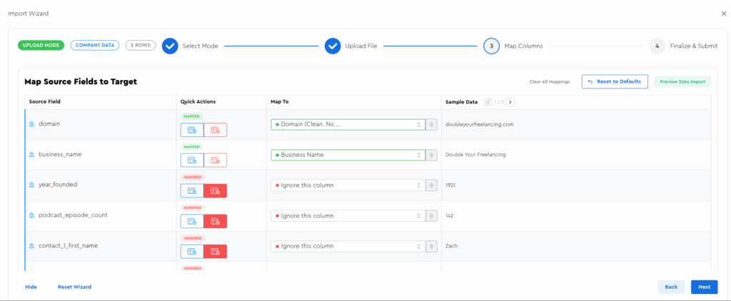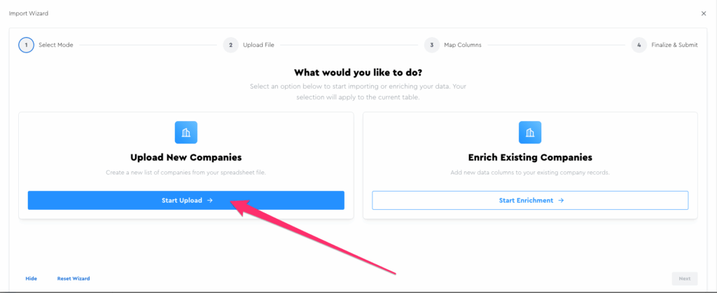 Given that we’re uploading fresh companies vs. enriching existing ones, we’ll go into upload mode