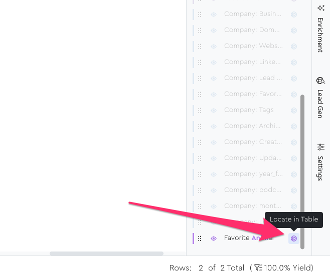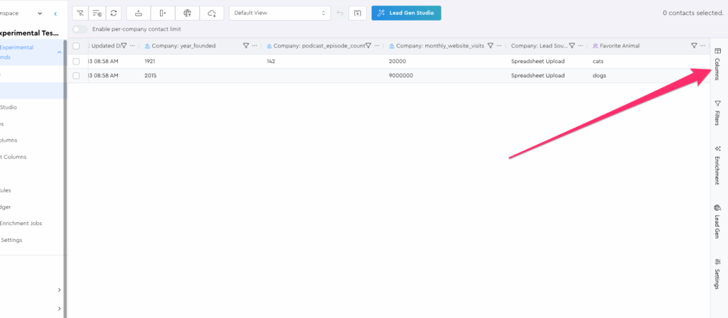 Back on your main Contacts LeadTable, open the Columns tool panel:
