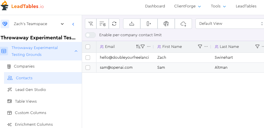 Re-upload your exact same “LeadTables_Example_Import” spreadsheet we’ve been using for this tutorial (NOT the enrichment one; the main one).