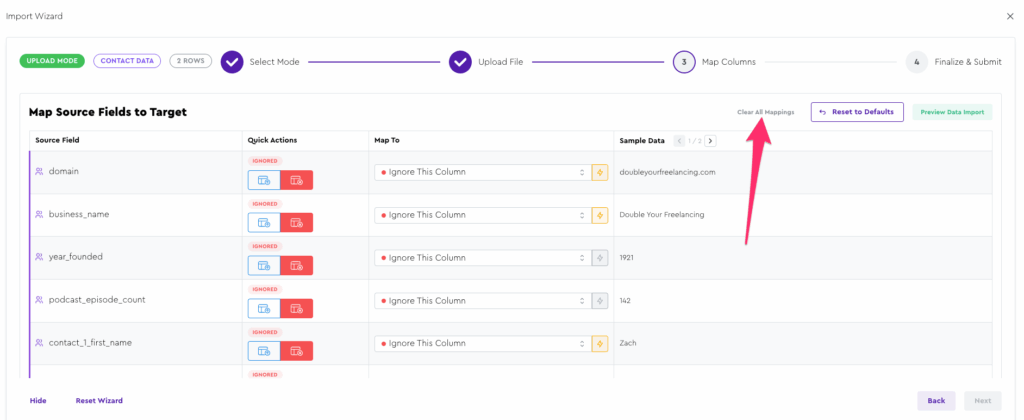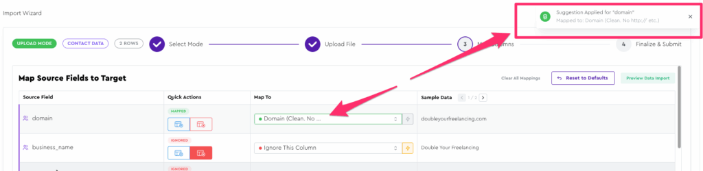 Now go back into the uploader to map contact 2, and you’ll see the new name reflected there!