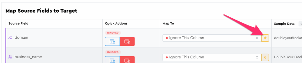 Then we can click the lightning bolt for domain to auto-map it, or just choose “Domain” from the dropdown list: