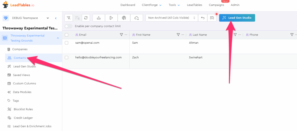 To start, go into your “Throwaway Experimental Testing Grounds” table that we created in the “Importing Your Own Leads” module.