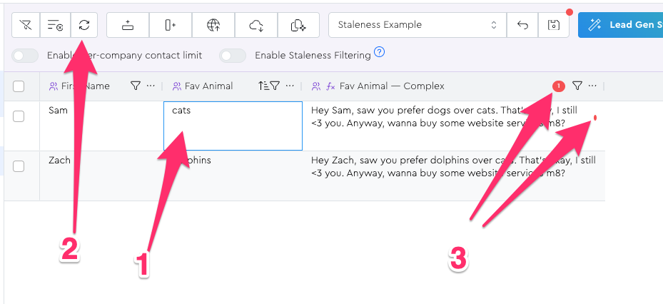 If you want to solidify your knowledge about “staleness,” you can edit Sam’s favorite animal to be “cats” and click your refresh Action Bar button, and you should see their formula marked stale because the render has diverged from reality:
