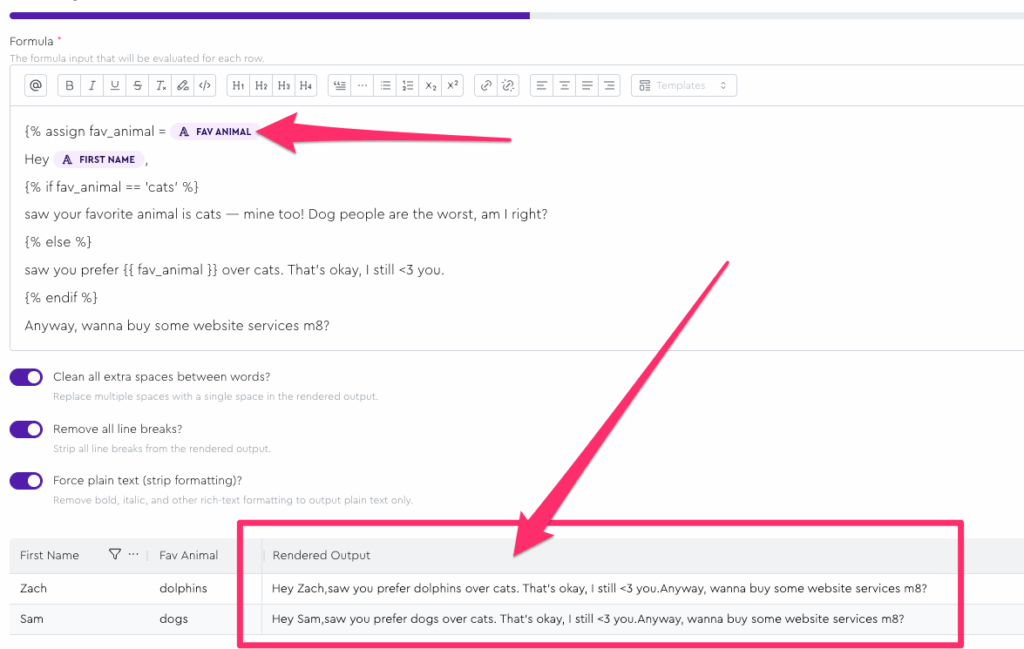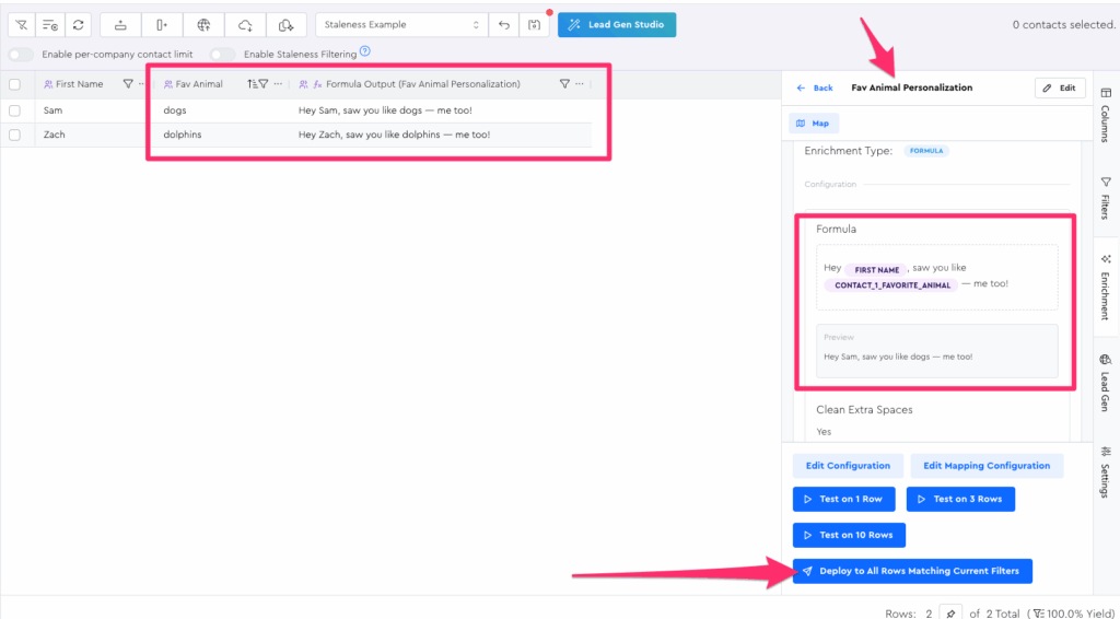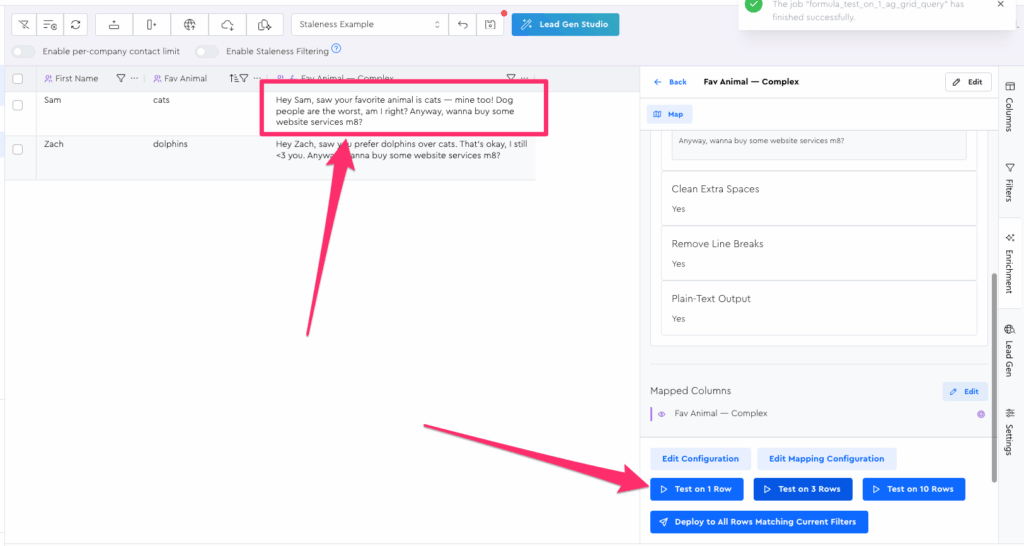 Zoom through the mappings and finalization steps and save the formula to be taken to it on your grid. If you now run it for your leads, it should render out like the preview: