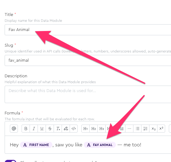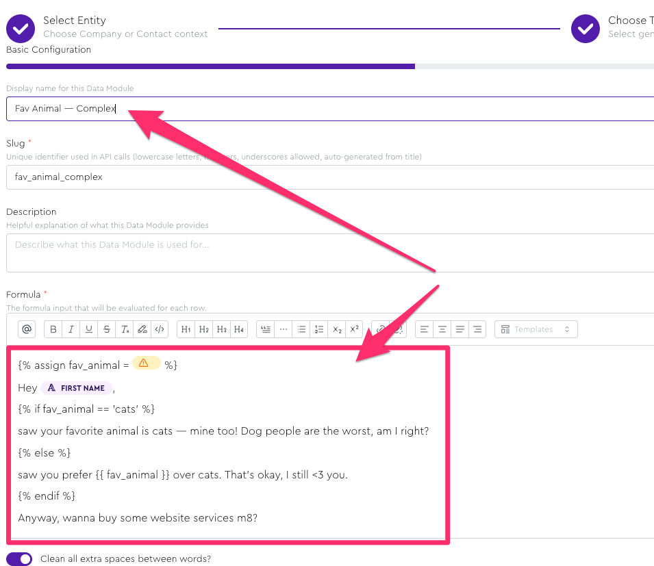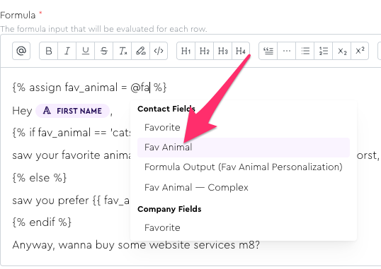 This time, set the name to “Fav Animal — Complex” and set the formula to the snippet of code below (Do ⌘ + shift + v / ctrl + shift + v when pasting to preserve line breaks):