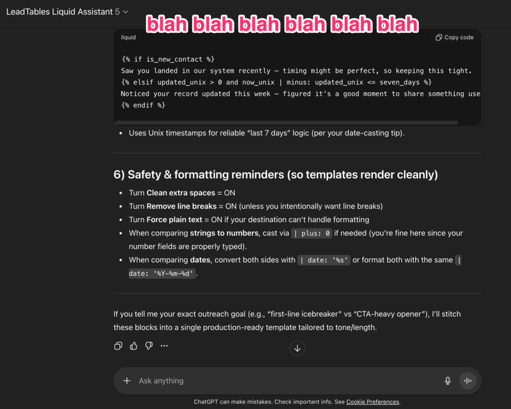 Tip: Use LiquidGPT As A “Syntax Formalizer” Moreso Than a “Personalization Creator”