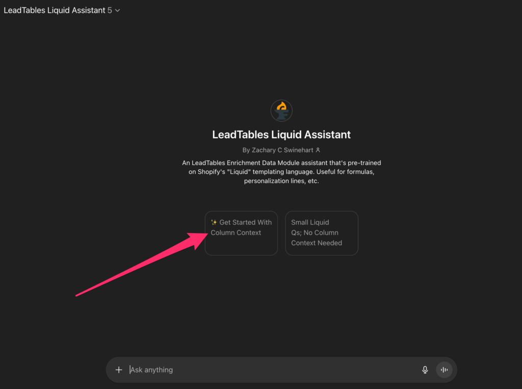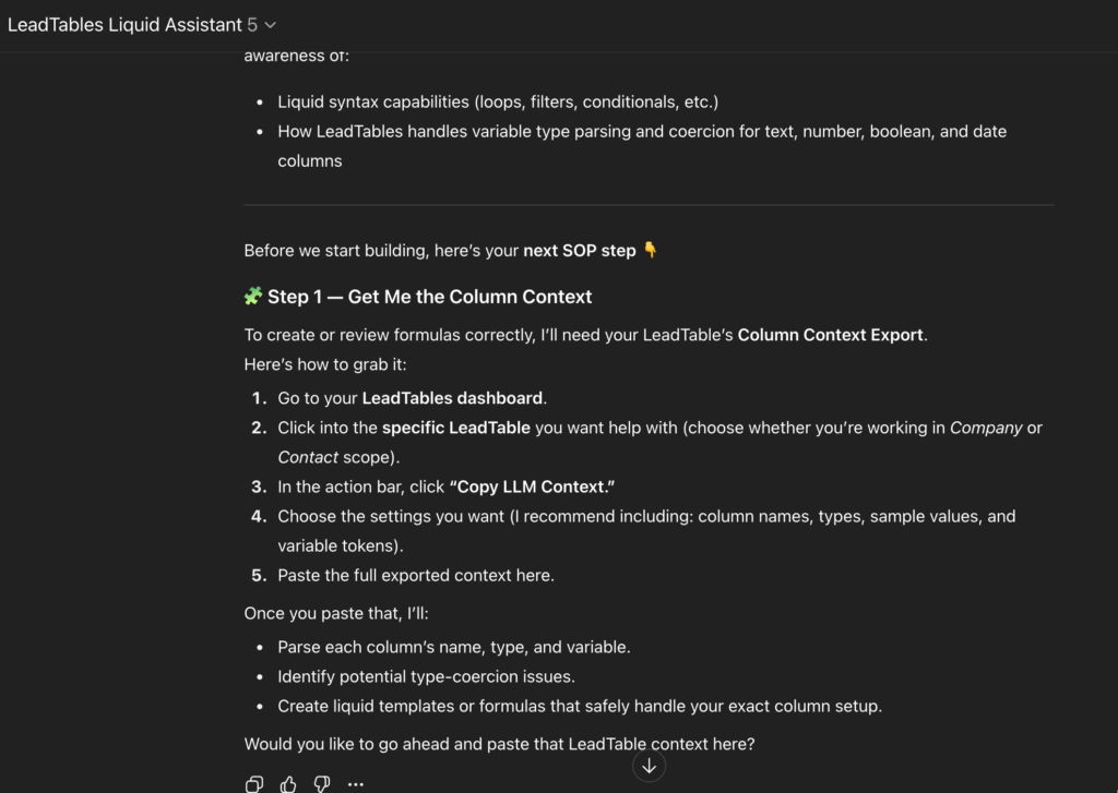 Or just click this link to go to it directly: https://chatgpt.com/g/g-68f61b426ac48191bd0949324e4d9bc4-leadtables-liquid-assistant