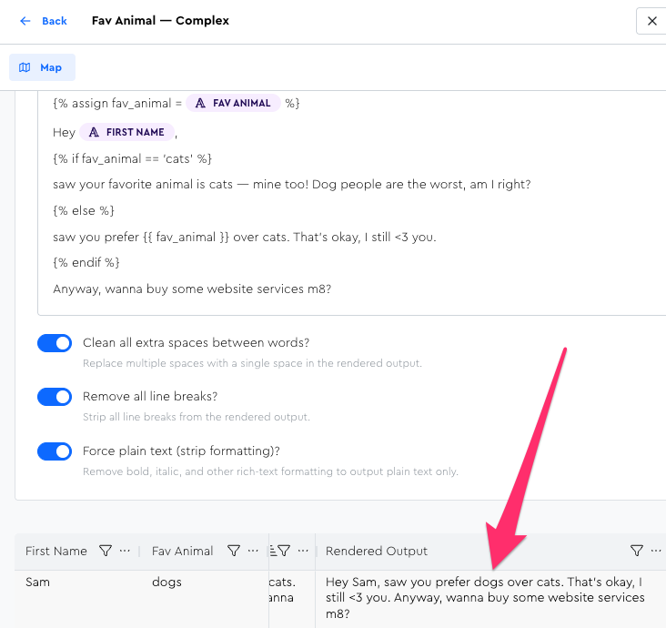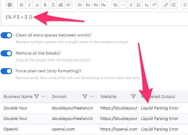 The nice thing about liquid in the context of LeadTables is that if you write some janky-ass non-functional liquid code, the output preview will make that clear: