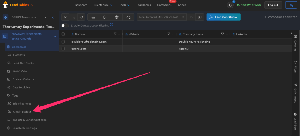 Running Your First LeadTables Job & Estimating Credit Costs
