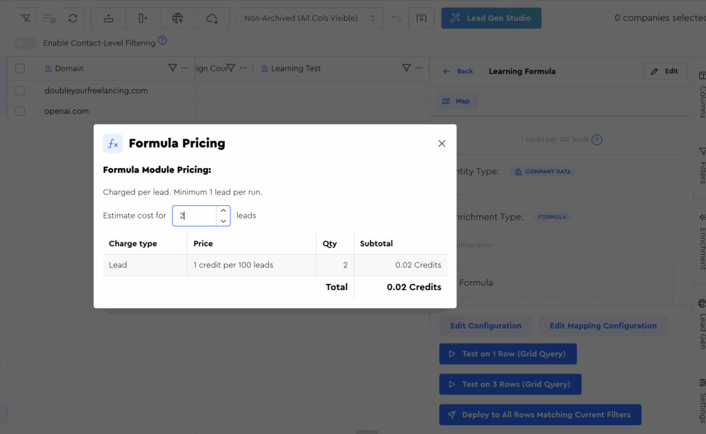 Fortunately for you, formulas are cheap for you to run on LeadTables, so this learning exercise we’re about to do will only cost you one fiftieth of a cent 🙂