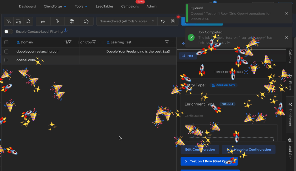 If all goes well, you should see a success notification and some fun dopamine confetti and see the resolved formula outputting in your table: