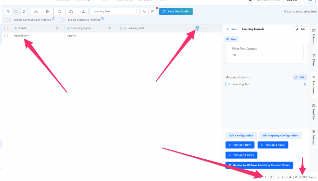 Whenever you run an operation, be it enrichment or lead gen, it’s best to test it on a few leads first.