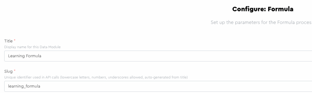Here’s an example of the “Formula Configuration Overview” lesson, where you can learn what the other config options on this page do. But don’t worry too much about that for this stage.