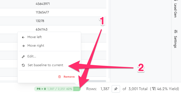 If you do something to your grid that would have affected the count of the leads that you pinned the yield from — e.g. you add a bunch more leads to your table, apply bulk actions that affect your filtering, etc. — keep in mind that the pinned yield count will NOT be updated.