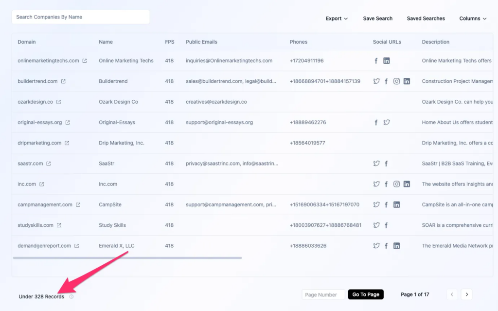 • Since it caps the records per search, you can use the minimum and maximum footprint to create “brackets” of 2,000 within a broader search, and export them piece by piece