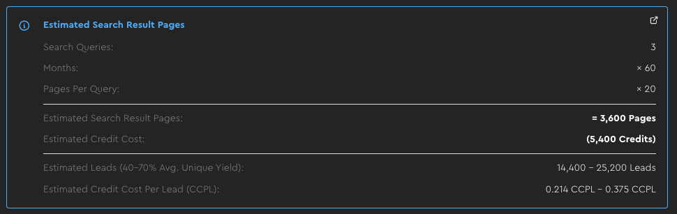- To probe for this, you can simulate with manual google searches first to see how many pages of leads it takes before quality starts to dip