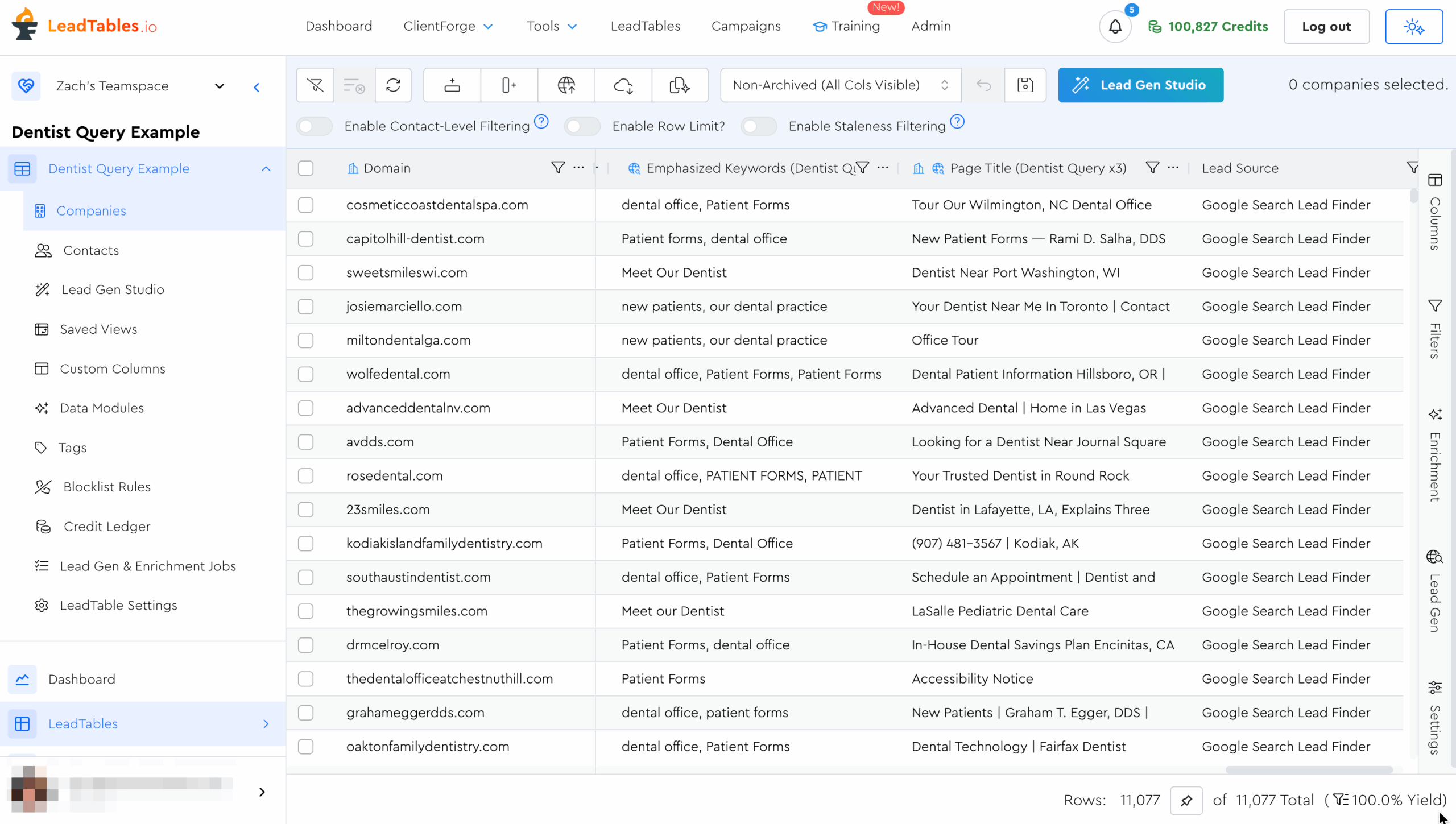 This module is currently powered by the Apify Google Search Scraper, with LeadTables managing all of the “lead explosion orchestration” that makes it possible to generate so many leads this way.