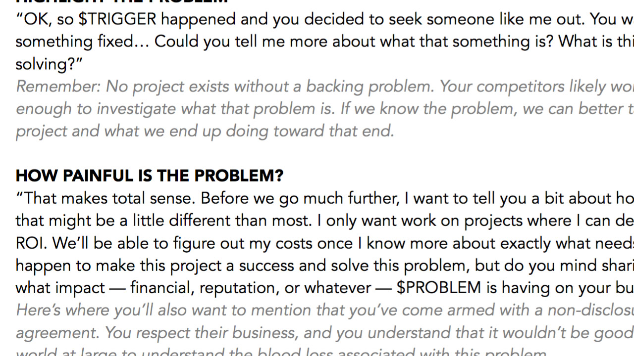 But once I had everything in order — how to qualify leads, how to systematically learn about the pain behind their project, how to quantify the value of projects, and how to write proposals — everything changed for me and my business: